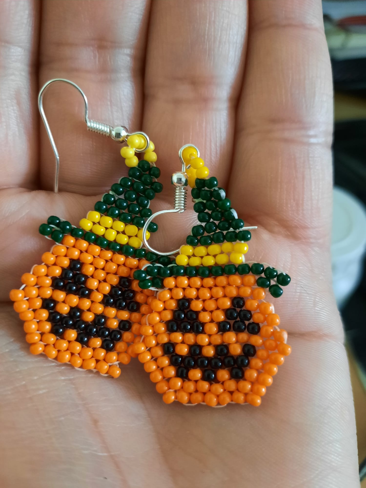 Handmade Jewelry Ein schicker Fußarmband aus Glassperlen.Handgemacht aus GlassperlenHalloween Ohhringe und Armband “Totenkopf”Halloween Kürbis Ohhringe aus GlassperlenDas wunderschönen und schicke Set ist jetzt verfügbar. Material:Glassperlen und AchatHandmade earringDie habe ich aus Versilbert Kupferdraht und Myuiki Perlen oder Rocailles gemacht.
