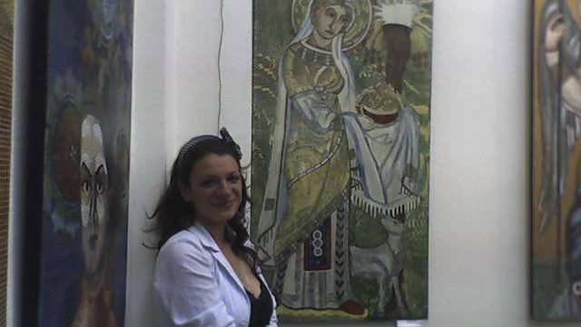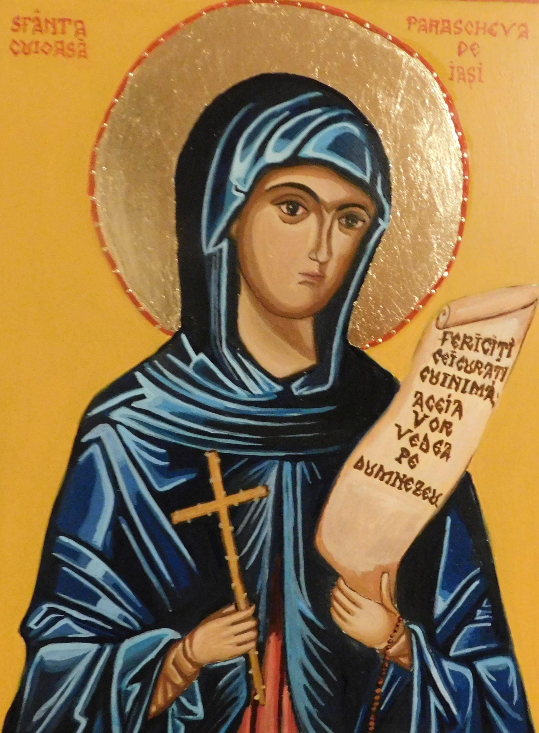 Sf. Cuvioasa Parascheva is a Orthodox Icon illustrating a Saint from Orthodox Church. The golden disk around her head is made of Gold leaf. Dimensions 17cm x 23cm