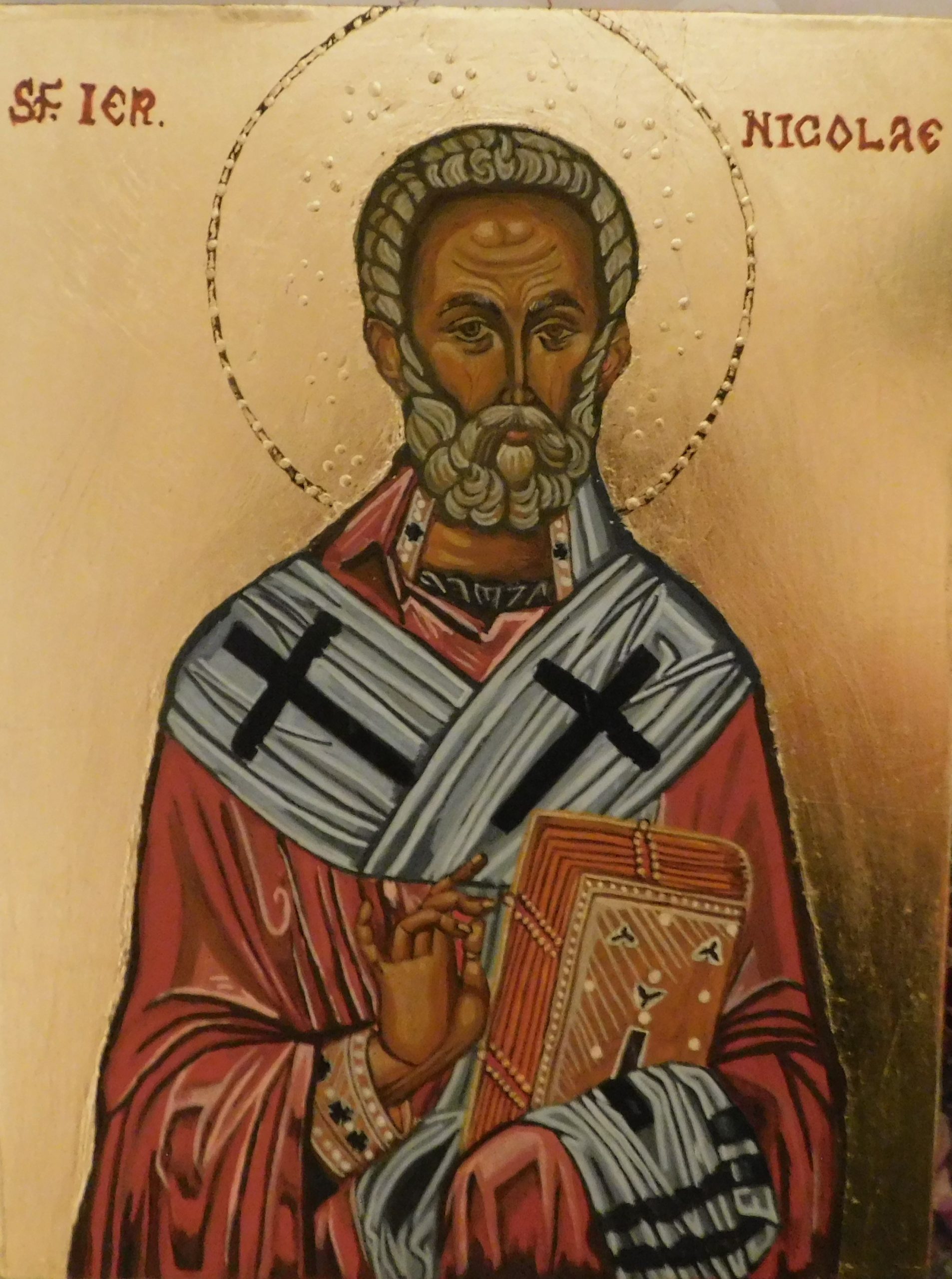 This is a Orthodox Icon, illustrate Saint called Nicolae or Nicholas. The background of the Icon is made of gold leafs. Dimensions are 23 cm x 17 cm.